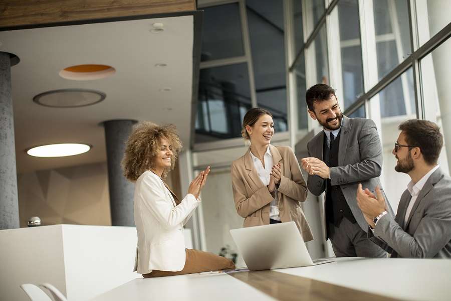 New employee introduced by business manager in seminar