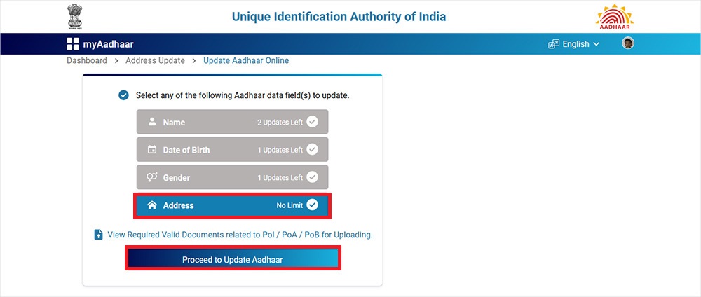 Eligibility for Online Aadhaar Address Update